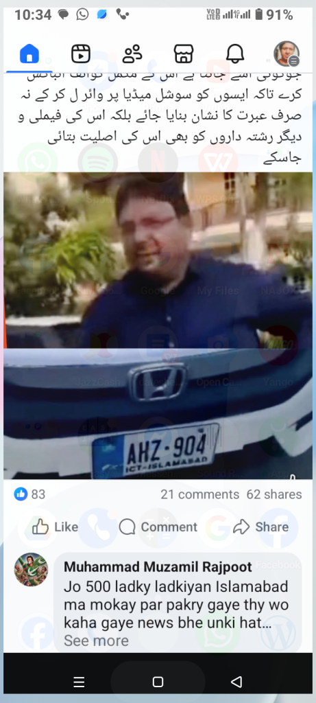 ‏ویڈیو سوشل میڈیا پر وائرل ہونے سے صارفین نے لاکھوں کی تعداد میں ویڈیو میں نظر آنے والے شخص پر تنقید کی اور ⁦‪Islamabad Police‬⁩ سے اسے گرفتار کرنے کی استدعا کی