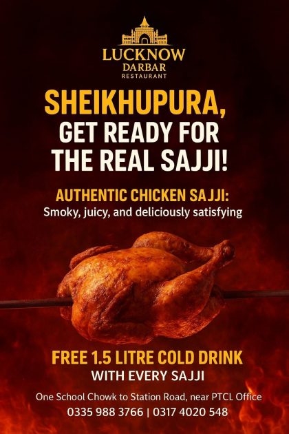 شیخوپورہ ۔لکھنؤ دربار ریسٹورنٹ خوش ذائقہ کھانوں کا مرکز بن گیا شیئر کریں ایم اے شام ستمبر 19, 2025September 19, 2025 0 تبصرے 172 مناظر شیخوپورہ شہر اور گردونواح کے باسیوں اور خوش زایقہ معیاری کھانوں کیلئے لکھنؤ دربار ریسٹورنٹ ایک خوشگوار اضافہ ہے