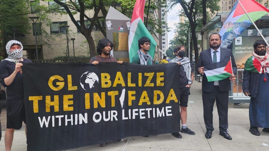جنرل اسمبلی کے موقع پر فلسطین کے حق میں مظاہرے میں مختلف ملکوں کے نمائندوں کی شرکت