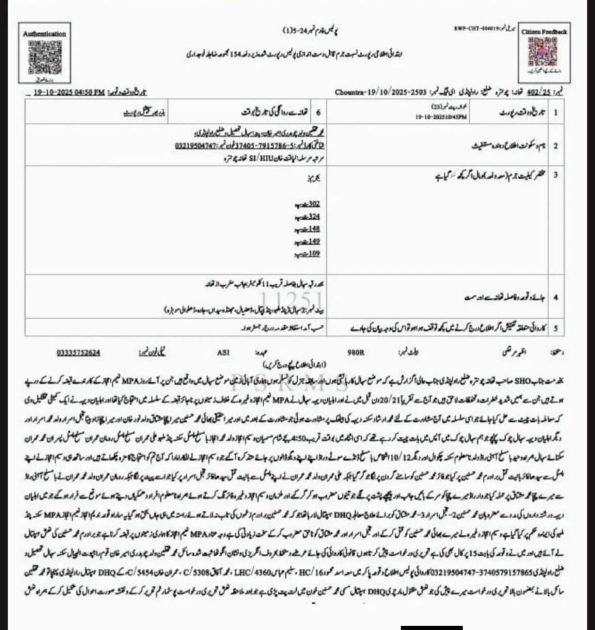 مقدمہ قتل اقدام قتل اعانت جرم وغیرہ کی دفعات کے تحت مقتول کے بھائی سابق کونسلر محمد ثقلین کی مدعیت میں درج کیاگیا