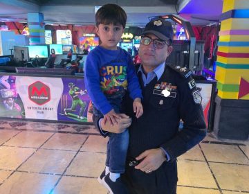 ایڈیشنل ایس ایچ او شالیمار محمد اسحاق بچے کے ساتھ
