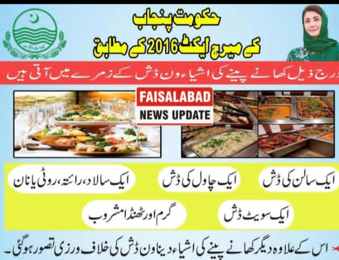 ننکانہ صأحب( مرزا ناصر بیگ )پنجاب کے مختلف چھوٹے بڑے شہروں میں ون ڈش کی خلاف ورزی کا سلسلہ بدستور جاری ہے پنجاب حکومت کی جانب سے جاری کردہ ون ڈش فہرست کے مطابق ایک سالن ۔چاول رائیتہ سلاد نان روٹی ایک سویٹ ڈش گرم یا ٹھنڈا مشروب شامل ہے اس کے علاوہ اگر کوئی اور ڈش شامل کی گئی تو اسے ون ڈش کی خلاف ورزی سمجھا جائے گا اور بھاری جرمانے کا سامنا بھی کرنا پڑے گا تا ہم اس کے باوجود ضلع ننکانہ صاحب میں مختلف شادی ہال اور شادی فنکشنوں میں ون ڈش کی خلاف ورزیوں کا سلسلہ بدستور جاری ہے