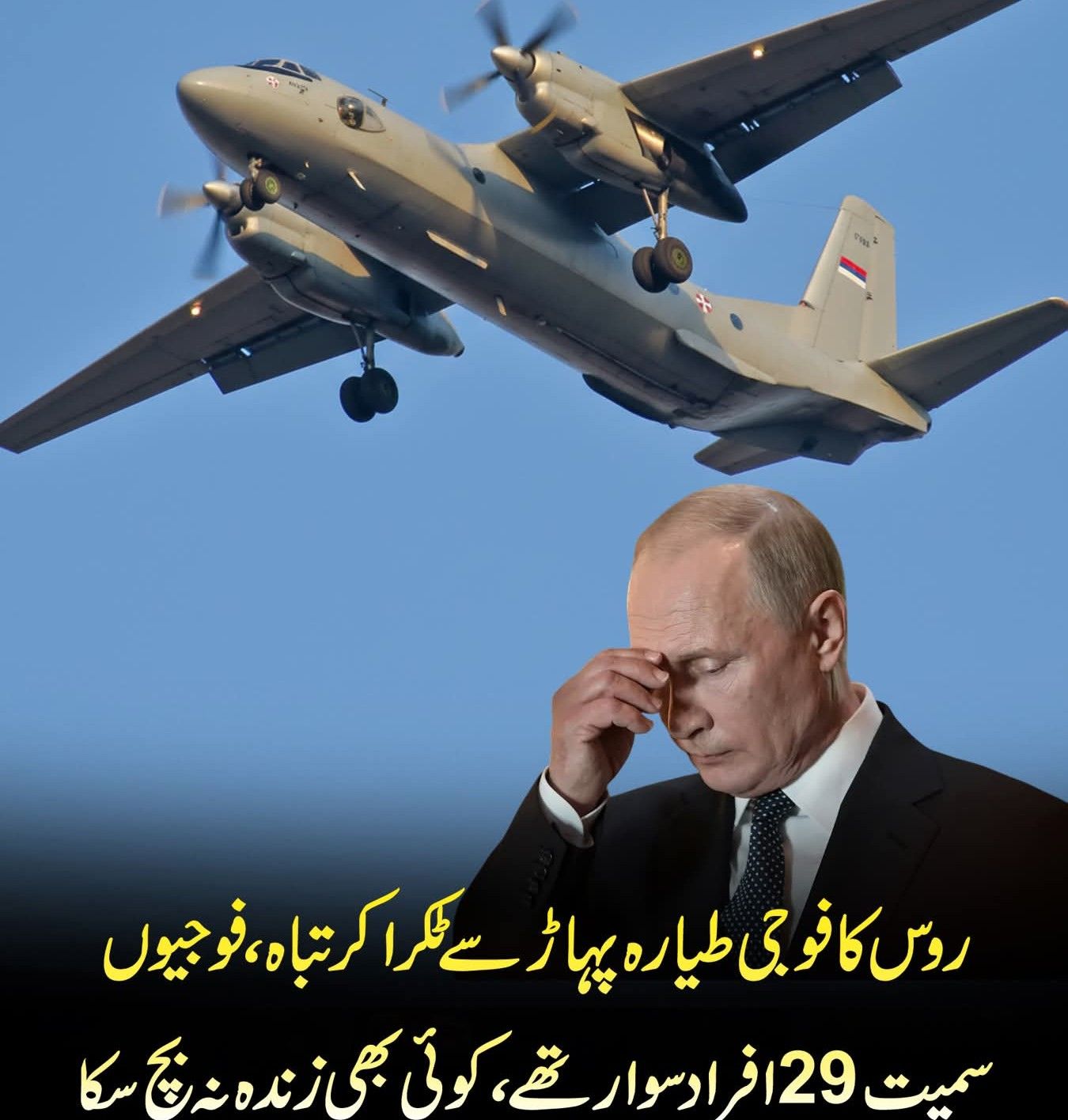 اسلام اباد (مانیٹرنگ ڈیسک )روس کا ایک فوجی ٹرانسپورٹ طیارہ گر کر تباہ ہو گیا، جس کے نتیجے میں اس میں سوار تمام 29 افراد ..مزید پڑھیں