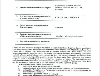اسلام آباد(کرائم رپورٹر )جوائنٹ ایکشن کمیٹی کے سرگرم رکن سردار امان ادریس کے خلاف سائبر کرائم اسٹیشن میں مقدمہدرج کر لیا گیااین سی سی آئی ..مزید پڑھیں