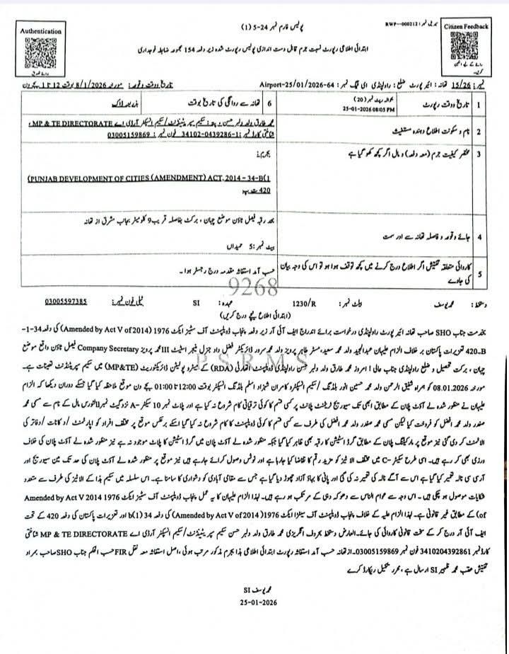 فیصل ٹاؤن کے مالک چوہدری مجید پر مقدمہ درج