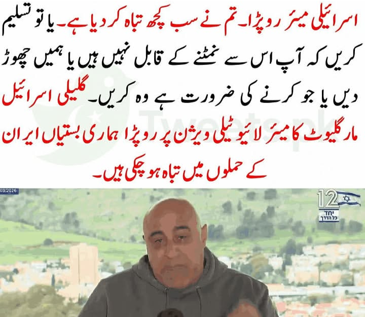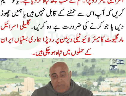 مسقط (انٹرنیشنل ڈیسک،)  اسرائیلی میر کی چیخیں اسمان پر اسرائیل کا ایک شہر مکمل صفحہ ہستی سے مٹ چکا ہے سڑکوں پر جگہ جگہ گڑھے ..مزید پڑھیں