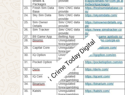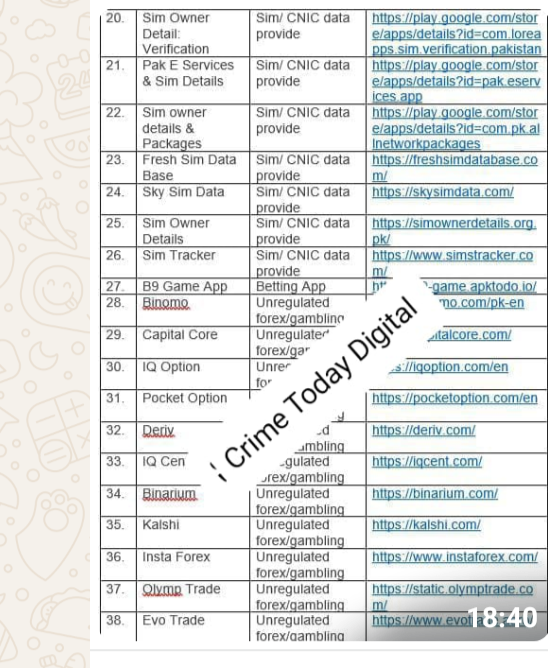 اسلام اباد( نمائندہ خصوصی) نیشنل سابئر کرائم انویسٹیگیشن ایجنسی NCCIA نے غیر قانونی ایپس کی لسسٹ جاری کر دی لسسٹ میں اسپورٹس بیٹنگ ایپ سمیت ..مزید پڑھیں